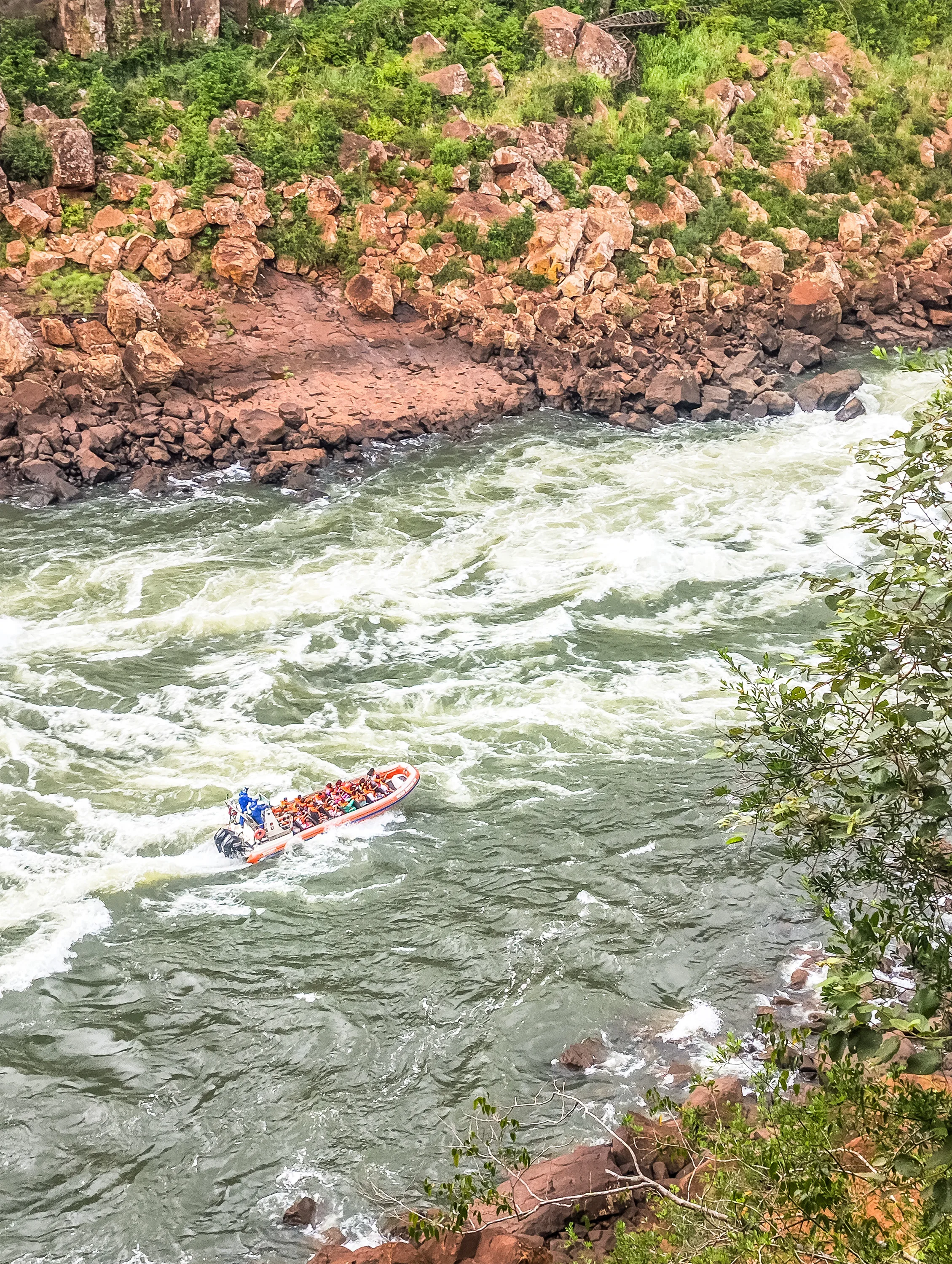 Arrived at the lower part, there’s a pathway along the river with a breathtaking view. Towards the end, there’s a footbridge to a viewpoint just below the waterfall. While something like that existed on the Argentinian side just above the waterfall, it is below the waterfall on the Brazilian side. You’ll definitely get wet walking onto it. The full force of the water falling down is experienced at this point. I personally preferred the Brazilian side. Actually, less touristy, cheaper, shorter and a better view. Nevertheless, I would recommend doing both. It was just funny since there’s a bit of a debate going on between Argentinian and Brazilian civilians who argue over which side is better.