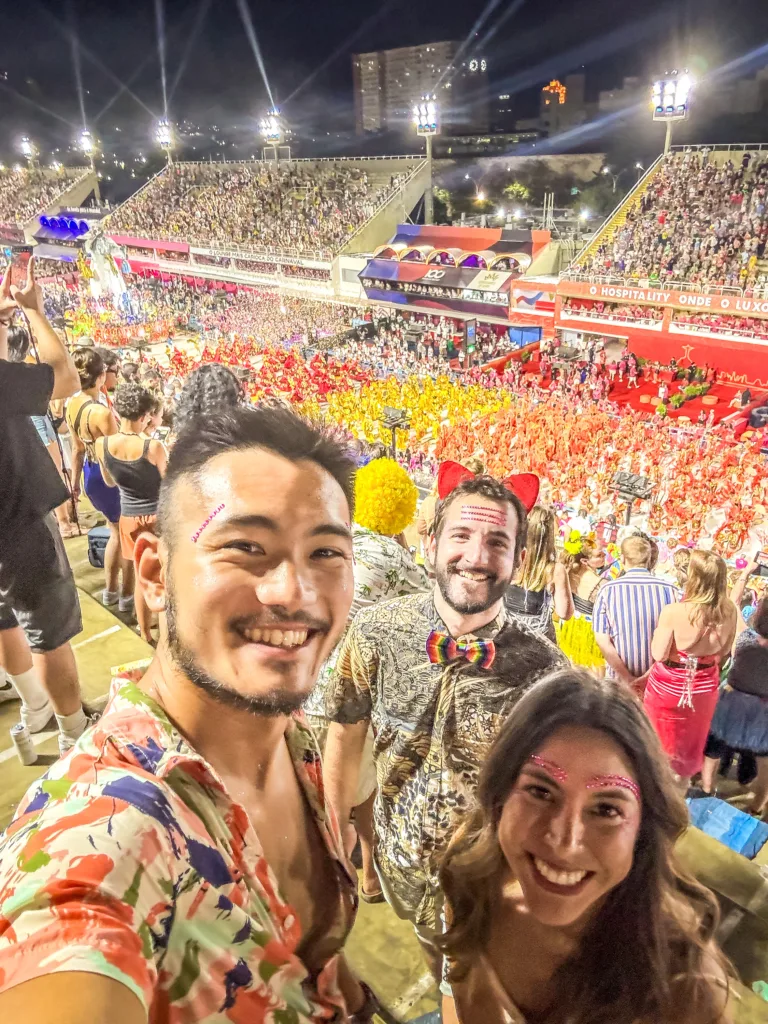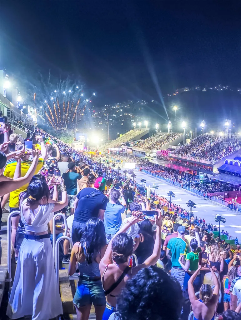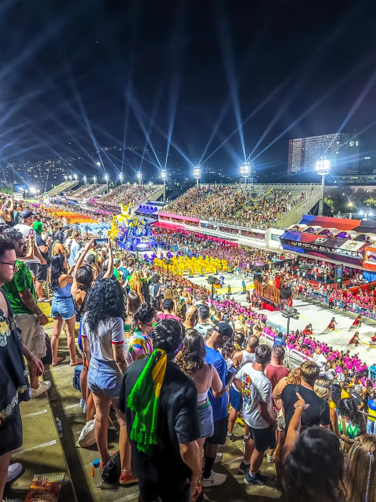 The night of the world-famous parade has come. It takes place in a specially designed and interestingly shaped venue. It’s a wide road, and along the sides are grandstands with special back entrances. As in most carnivals around the world, it’s about topics that have moved people over the years. In Brazil, it is combined with dances, light clothing, and music. I’m not into Samba music, but I wanted to experience this special tradition. There are multiple groups moving from the start to the end of the road. The same song is performed live on repeat. Trucks with people on them, and in between the people, dance while moving forward very slowly. It takes 45 minutes for a group to complete the full length. Then there’s a break, and the next group performs, moving through the dome. The event lasts until very late in the night.