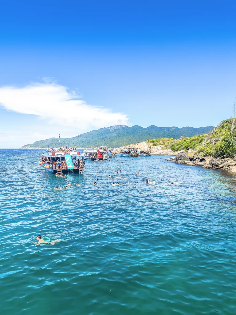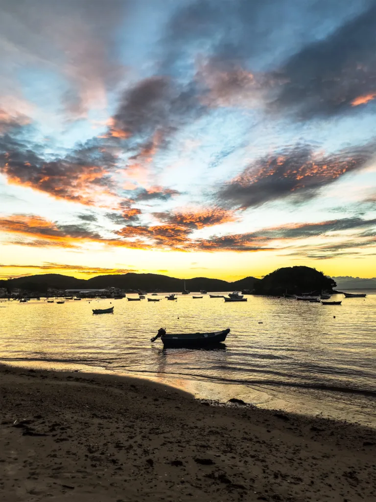 We only had one weekend. So we started it with a “sunset coconut” at the beach. The next day, we joined a tour in the South. First, we had a boat tour with a swim and beach stops. Then we stopped for lunch in the next larger city, Cabo Frio. And yes, the water was noticeably colder than up in Búzios.