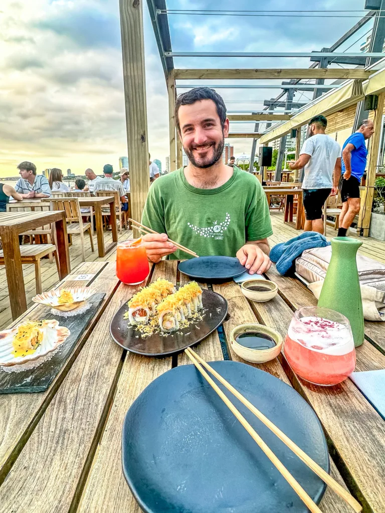 Before the sun set, I went to a beachside restaurant to enjoy the sunset by the ocean, with Nikkei cuisine and a cocktail. The sunset was full of colours and beautiful. Nice music played by a live DJ. Good vibes and a good ending of the day in the East of Montevideo. After it got dark, I headed back to the bus station to grab a bus back into the capital.